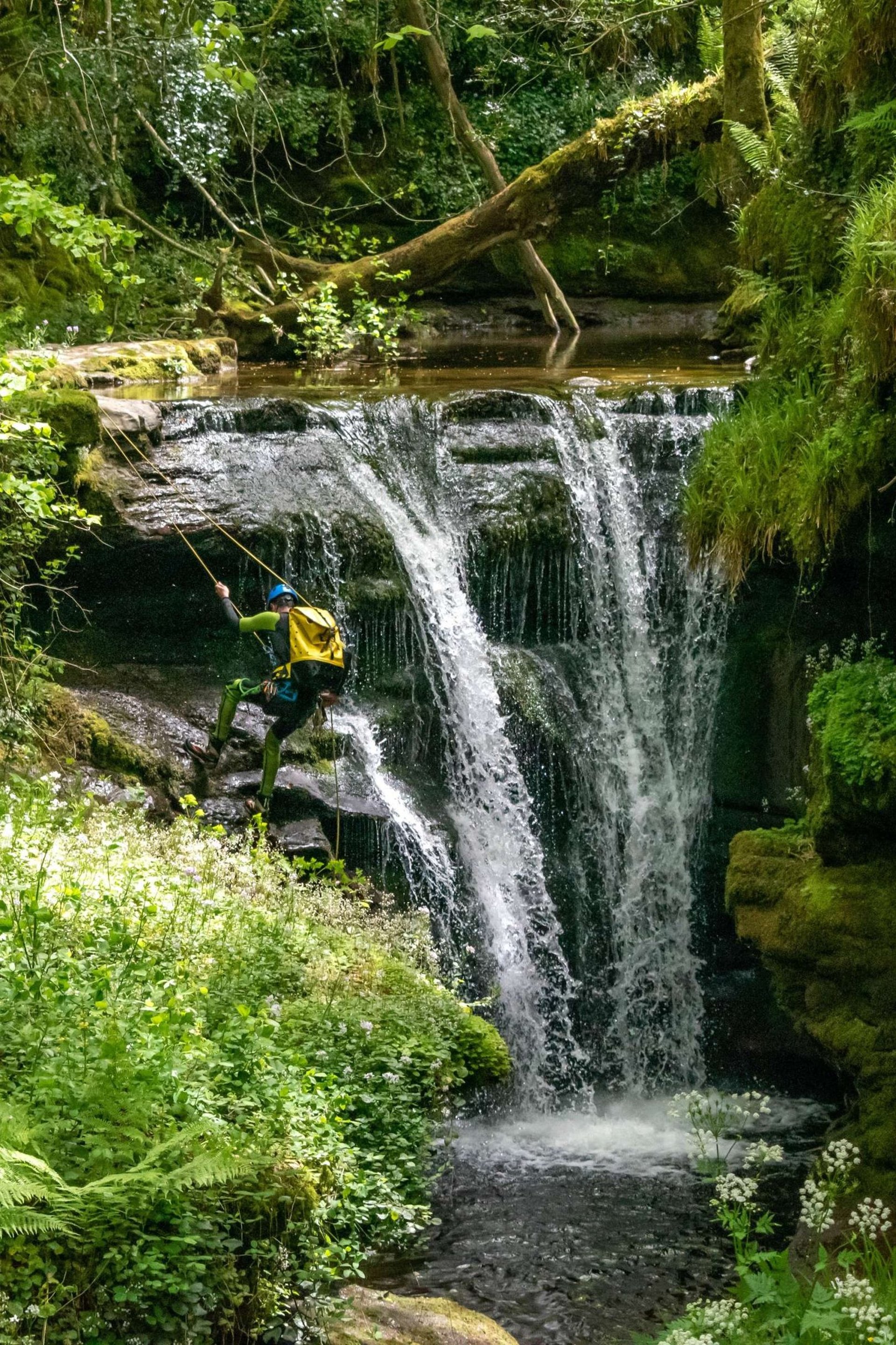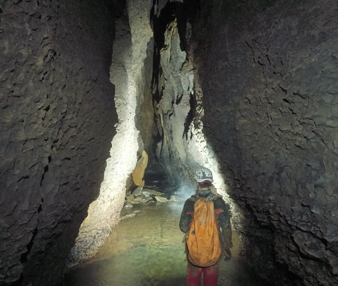 Espeleobarranquismo con relieves naturales excavados en el lecho de un río subterráneo